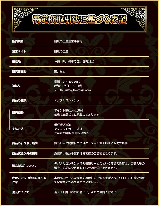 - 【販売業者】競艇の王道運営事務局