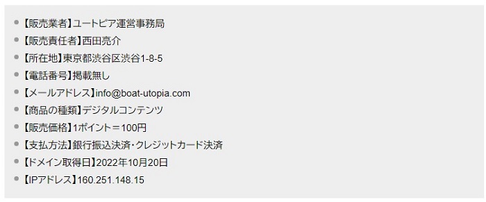 まずはIPアドレスについて調べてみると、ドカフネで電話番号の記載すらなく、デザインもしょぼすぎで悪質認定した「競艇ユートピア」と