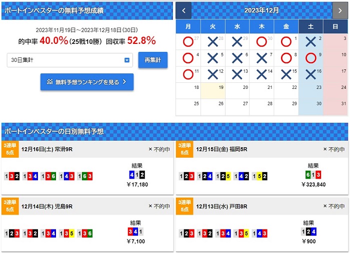 無料予想の結果を見てみると、万舟、さらに30万舟と大穴決着が続いており、とにかくレース選びから下手だということが分かります。