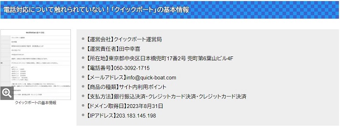 クイックボートはお客様の声など捏造部分が多く、不明点も多いなど悪質ポイントだらけのサイトでした。