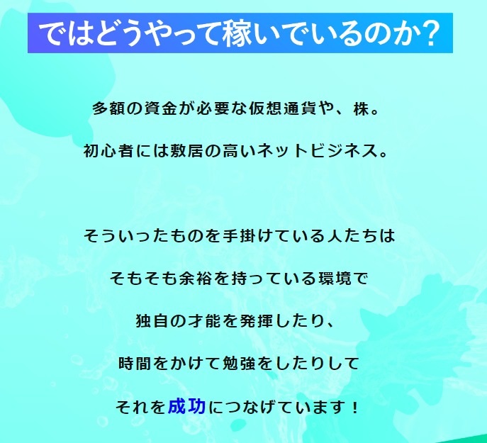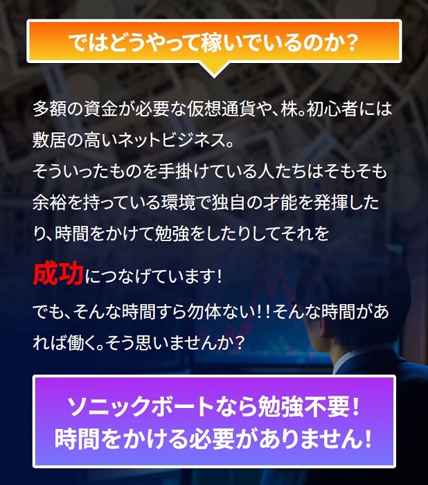 稼げる人は現代社会でどうやって稼いでいるのかなんて内容の記載がありましたが、ここはソニックボートで書かれていた内容と全く一緒です!