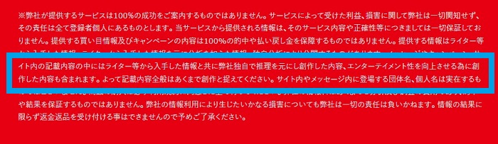 そのため、的中実績を捏造していたり、お客様の声を捏造していたりしても、「エンターテイメント性を求めた創作です。