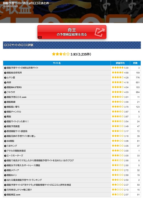 口コミ評価も高い大人気老舗サイト「舟王」!予想の質は落ちていないのか!