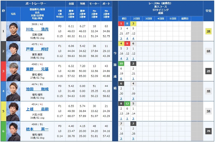 - 【1号艇】:川北 浩貴選手(A2/滋賀)