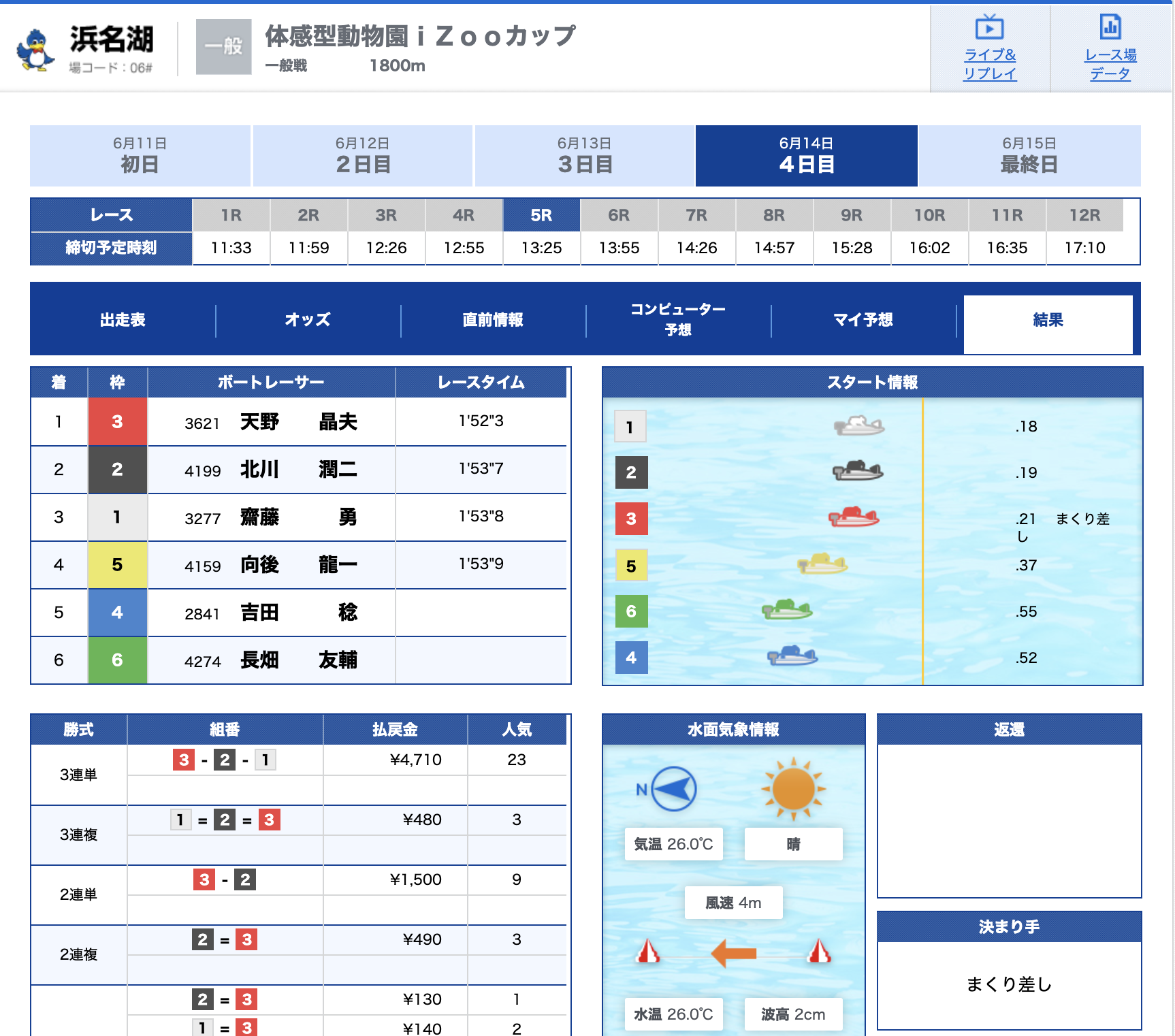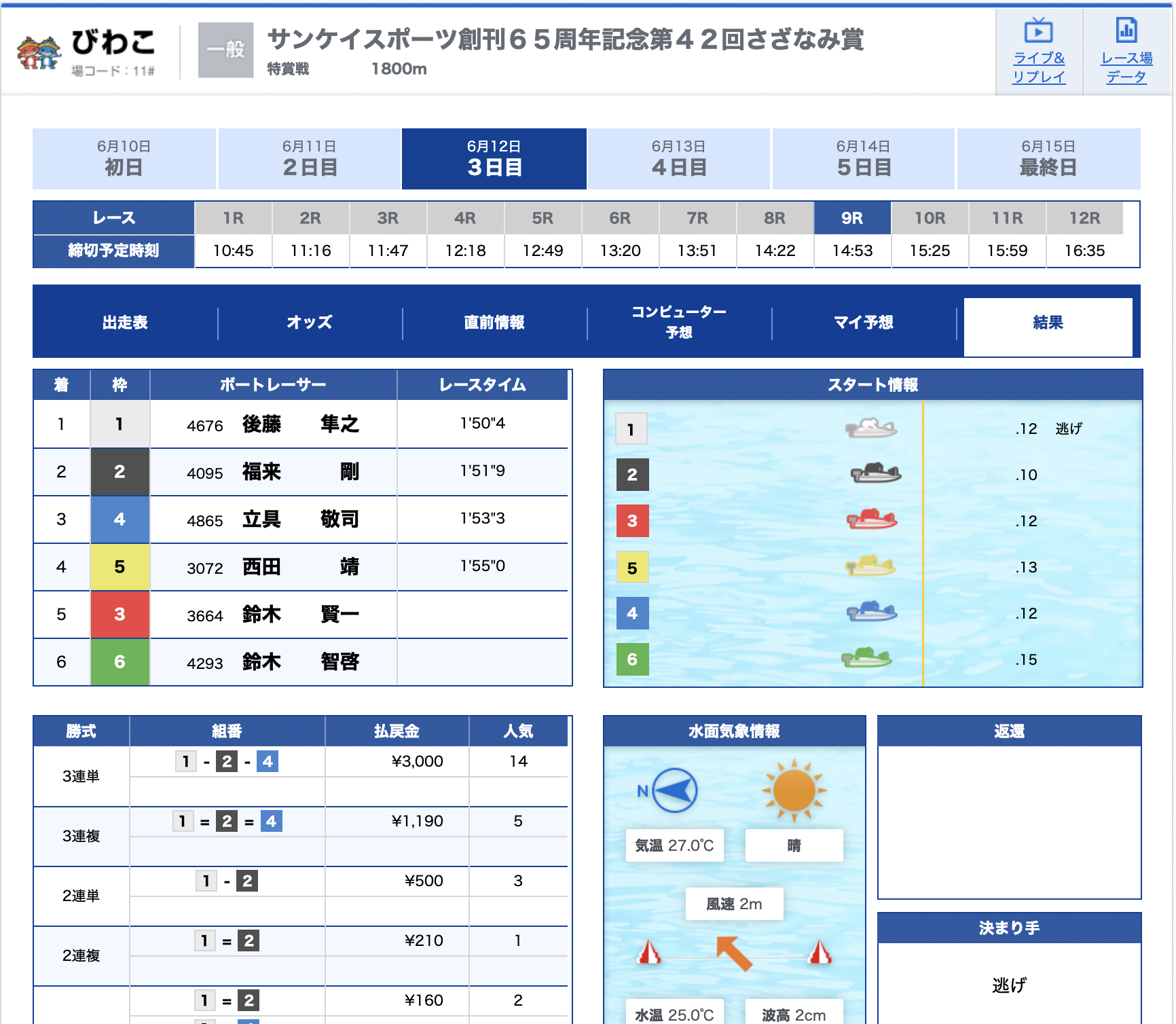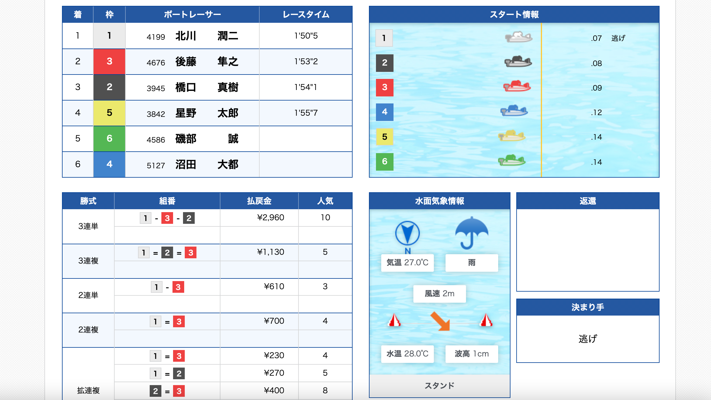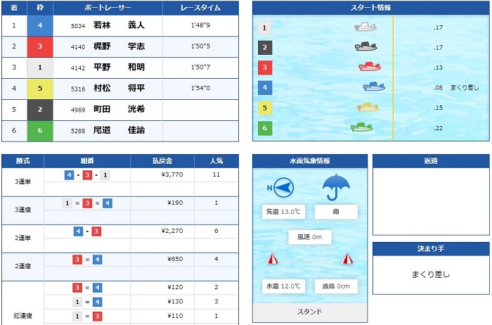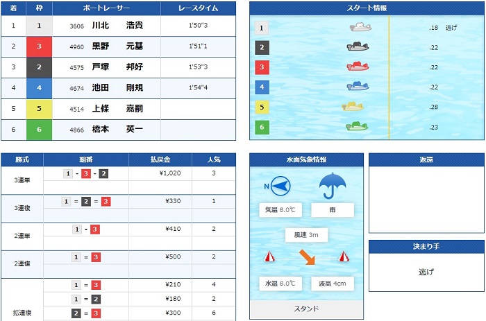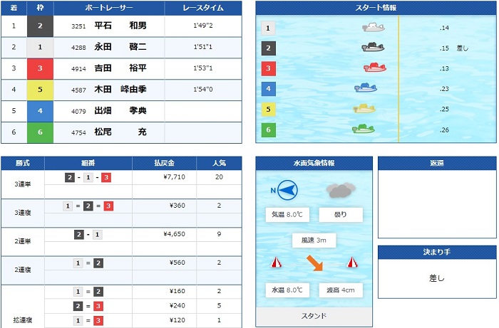 僕はノーマークだった2号艇平石選手が差しで1着!