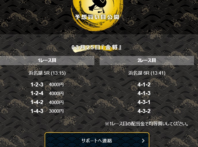 いきなり帯達成、2レースともに4点予想でしっかり的中させる実力を見せた金将。