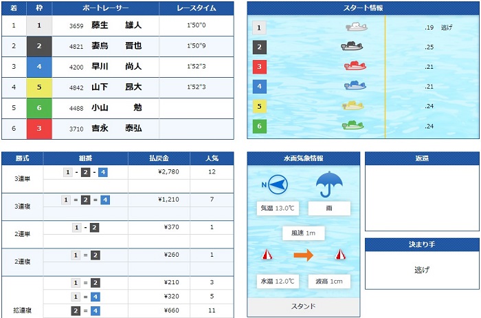 競艇予想サイト「舟王」は2着1号艇と固定で予想をしたようだ