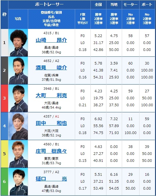 - 【2号艇】:町田 洸希選手(B1/長崎)