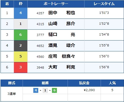 まずは、浜名湖5Rの予想とレース結果です。