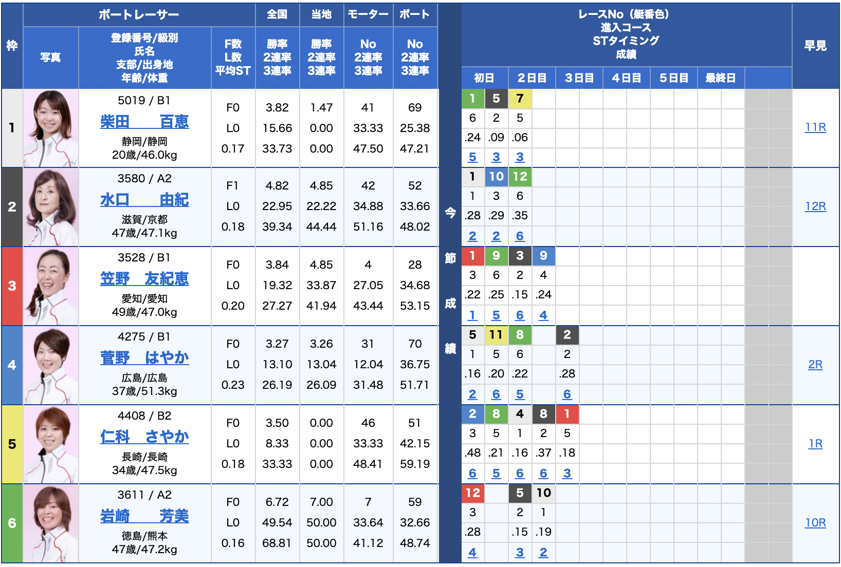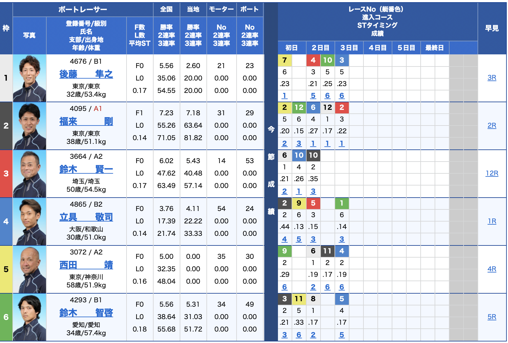 - 【6号艇】:橋本 英一選手(B1/福岡)