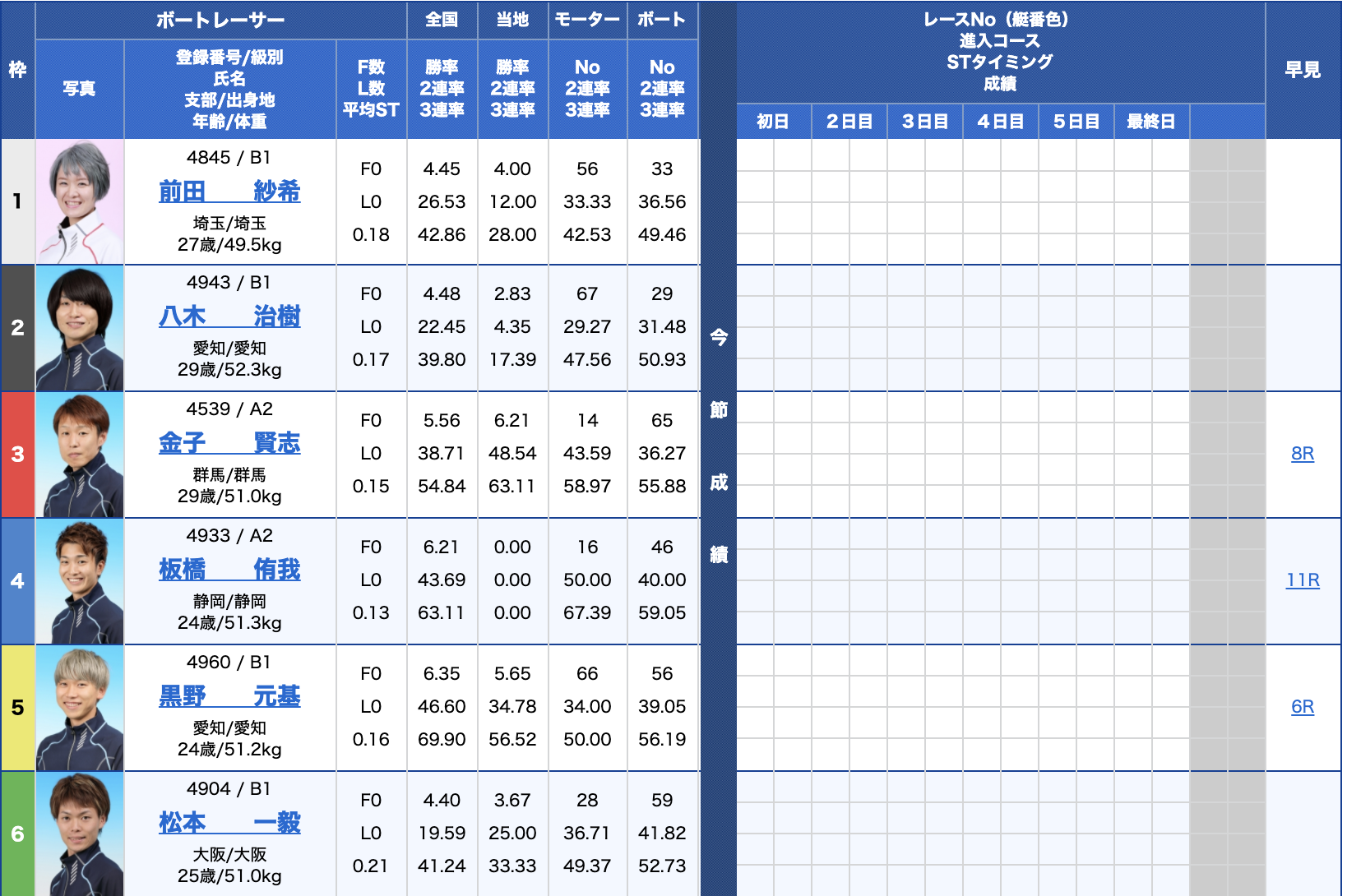 常滑8Rの出走表から確認をしましょう。