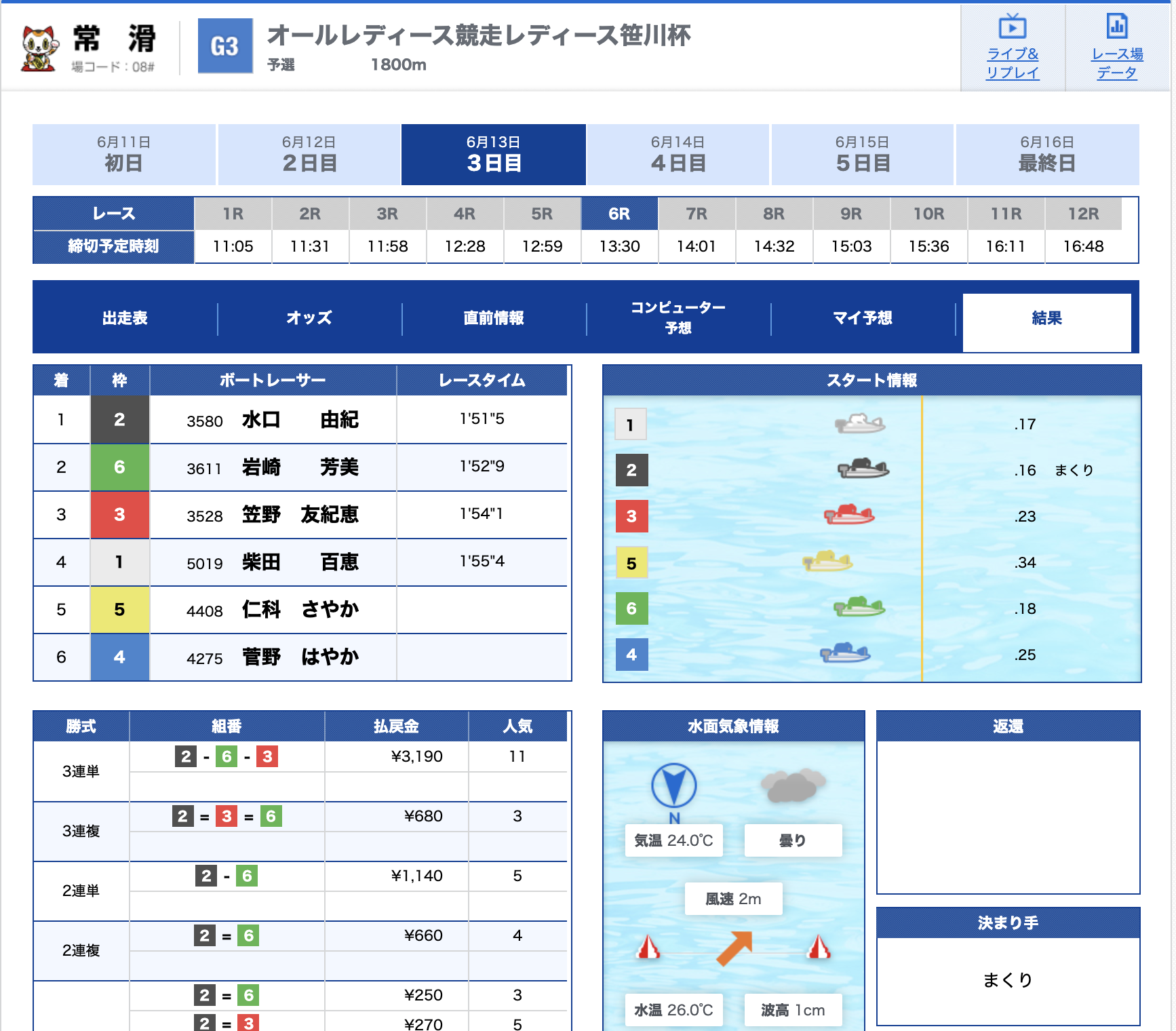 - 【6号艇】:小山 勉選手(A2/埼玉)