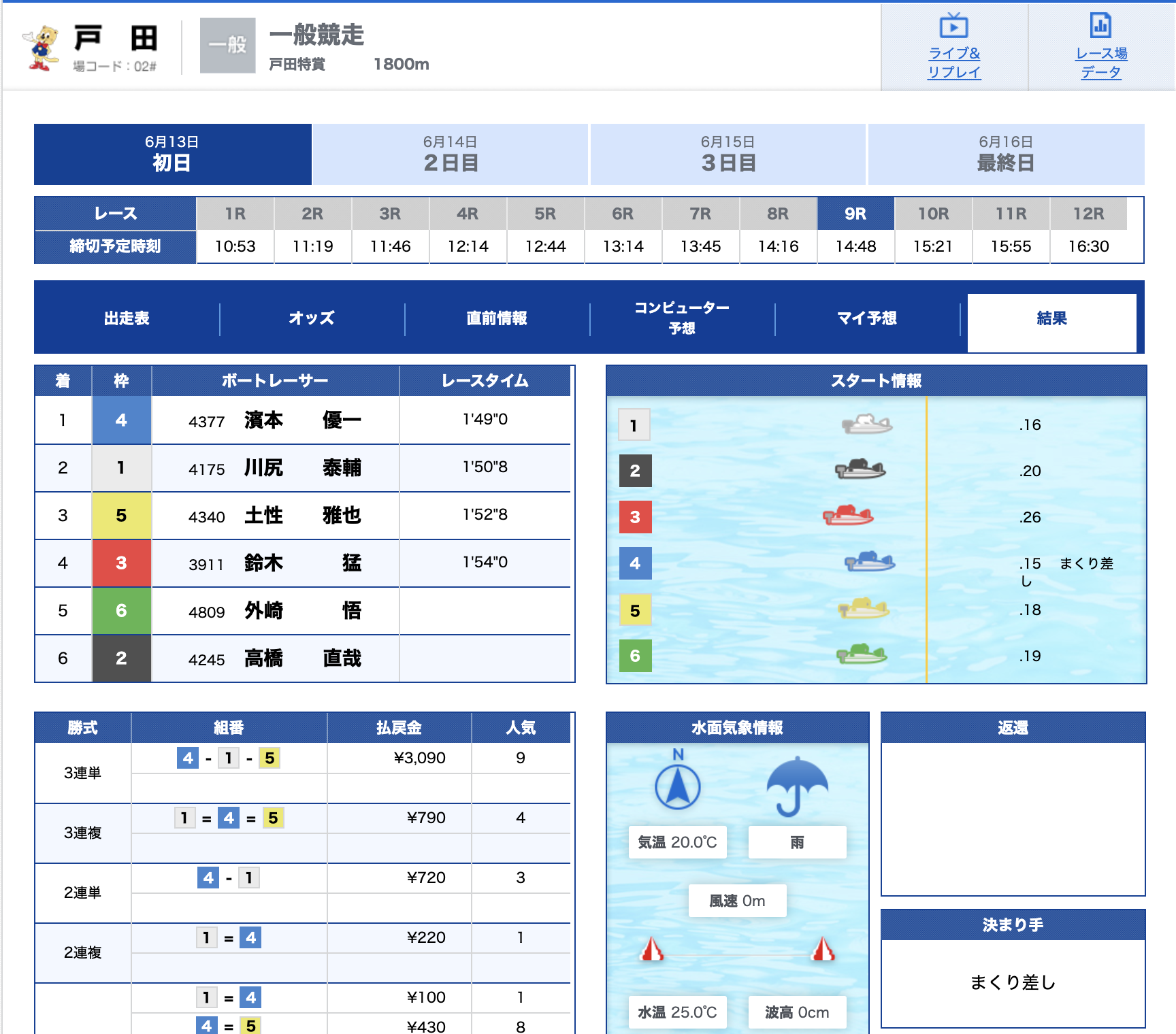 - 【2号艇】:戸塚 邦好選手(A1/東京)