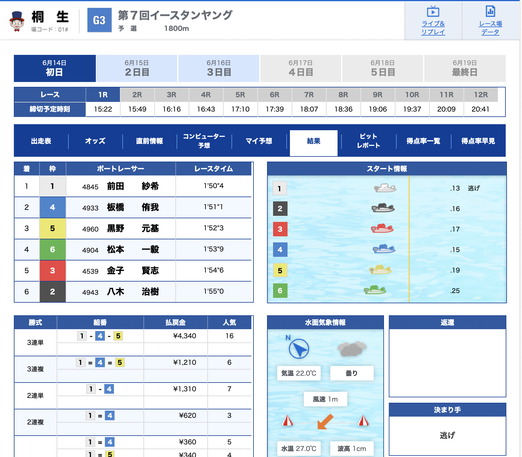 1号艇にはA2藤生雄人選手が入り人気を集めています!