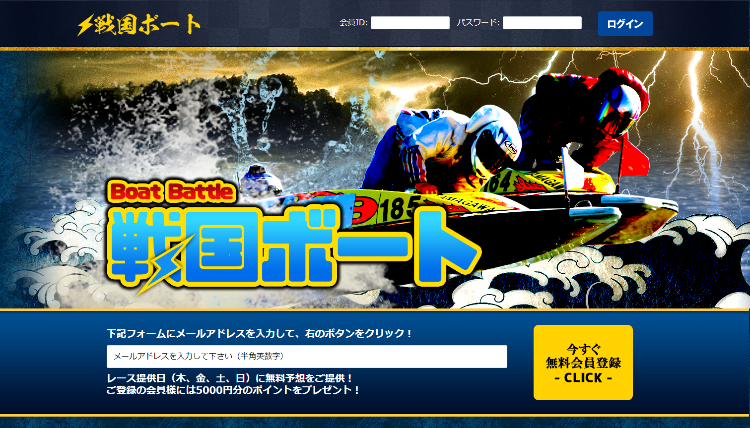 「戦国ボート」の初回特典は、10,000円分のポイントと木曜日から日曜日までの週に4日間の無料予想を情報として提供してくれるみたいですね。