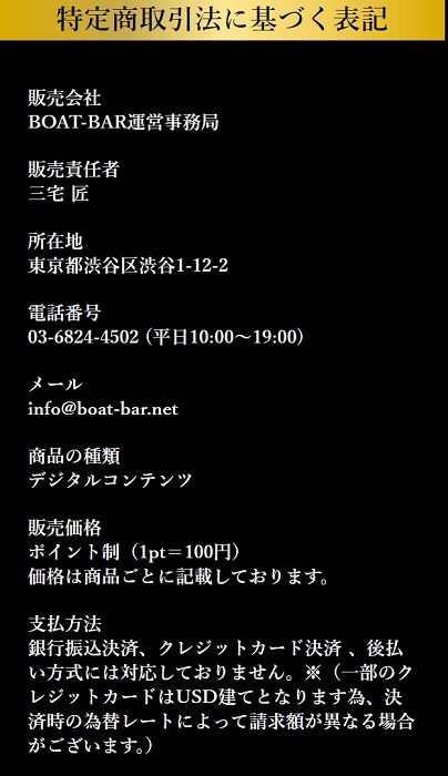 - 【販売会社】BOAT-BAR運営事務局