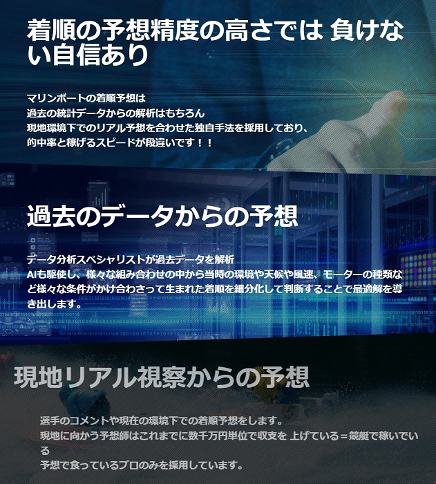 下を見ていくと、マリンボートの予想の強みが書かれていました。
