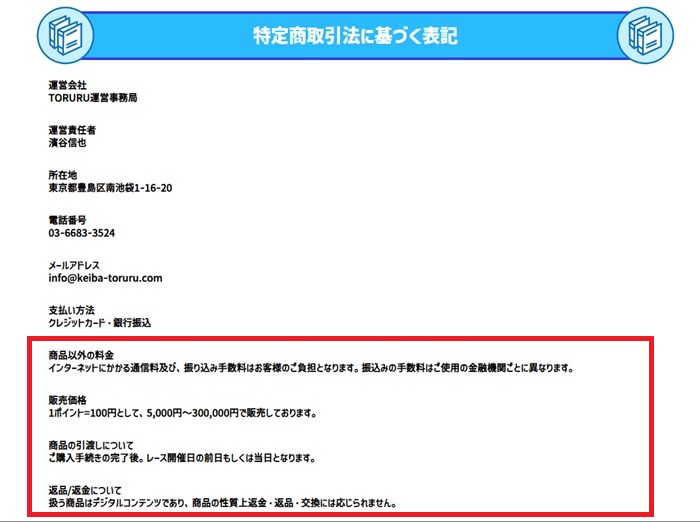 販売価格の「1ポイント=100円として、5,000円~300,000円で販売しております。」や、商品の引渡しについての「ご購入手続きの完了後。