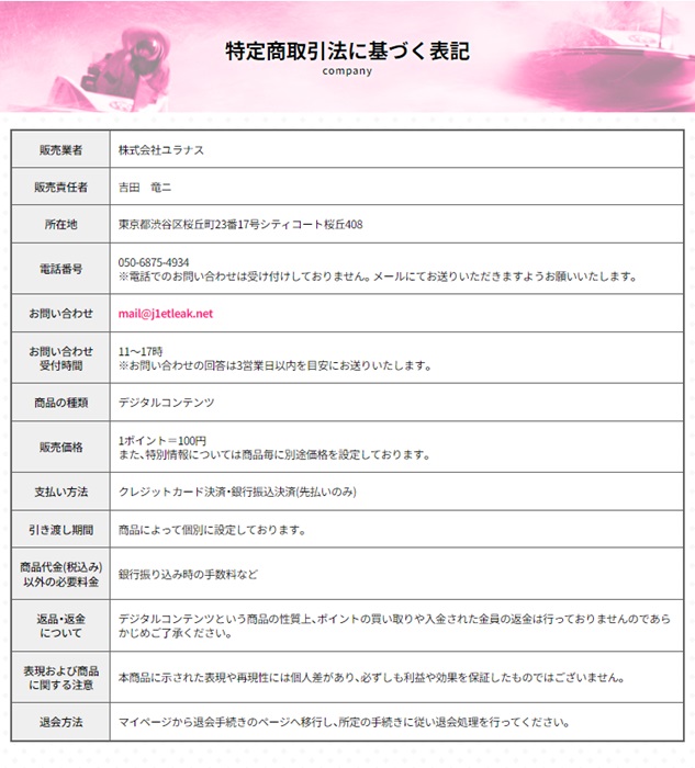 - 【メールアドレス】mail@j1etleak.net
