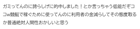 競艇で稼ぐために使ってんのに利用者の金減らしてその態度取るか普通絶対人間性おかしいと思う