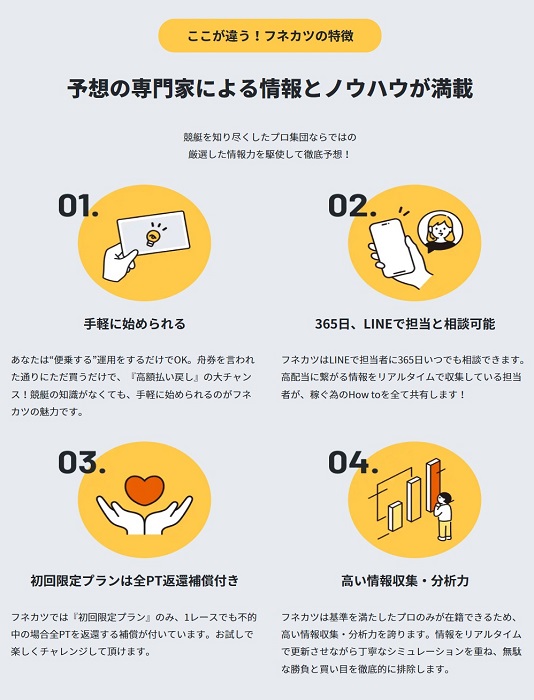 フネカツの無料予想の特徴は以下の通り。