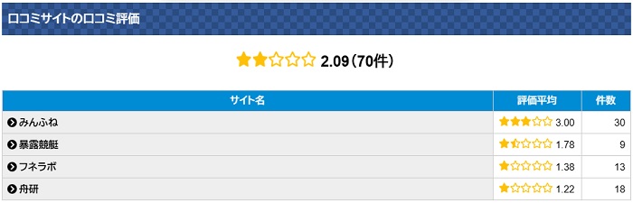 全体的な評価は低い中、 「みんふね」での評価 はそこそこだワニ。