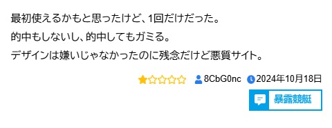 予想も当たらないという声が多く、これらの口コミを見ると使いたいという気持ちにはなりませんね。