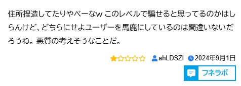 ドカフネでは初回検証で、「存在しない住所を記載を記載」していたり、「手抜きや雑な部分が多い」点から怪しいサイトだと判断。