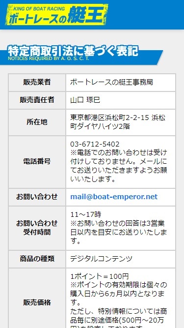 バーチャルオフィスを利用したサイトは多いですが、ボートレースの艇王は電話対応を行っていなかったりとかなり怪しい印象です。