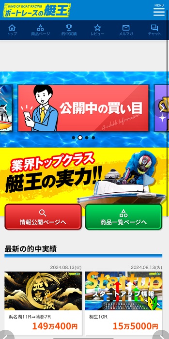 早速「ボートレースの艇王」のトップページや基本情報を見ていきましょう!