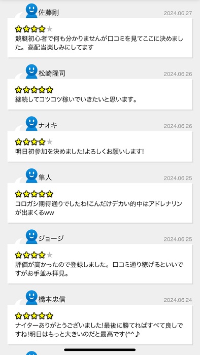 他の検証系サイトを見た感じ、ボートレースの艇王はまだできたばかりのサイトのように思えますが、これだけのお客様の声が並んでいるのは不自然です。