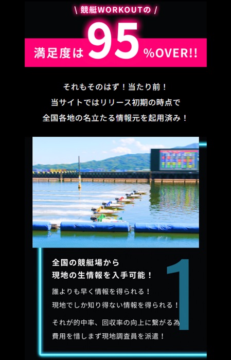 なんの根拠も無い「満足度95%」という記載があったり、競艇を知っているとは思えない予想師の掲示板があったりと、あの手この手で良いサイトだと見せようと頑張っているだけの低レベルなサイトです。