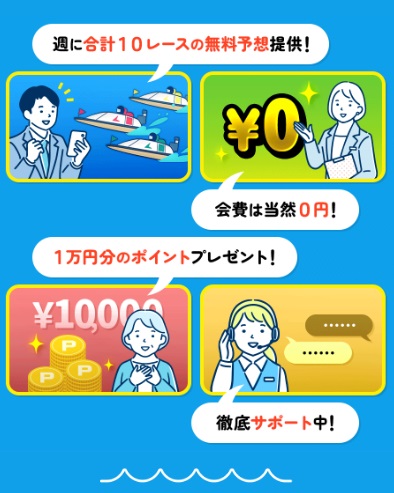 会費無料や徹底サポートはこれといった特徴ではありませんが、週10レースの無料予想はこのサイトがどれだけの予想ができるかの指標になりそうで楽しみですね。