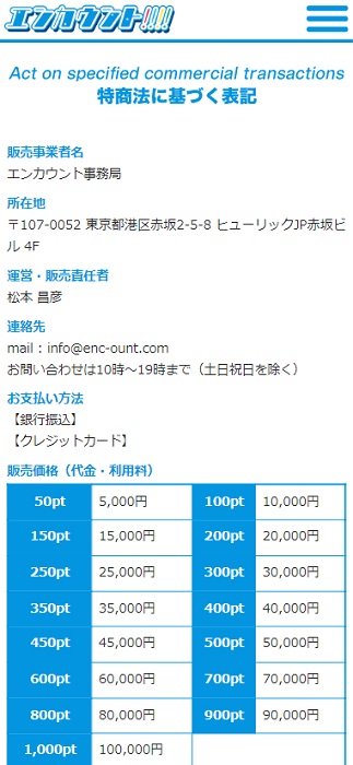 エンカウントの特商法の表記のなかには電話番号の記載がありません。