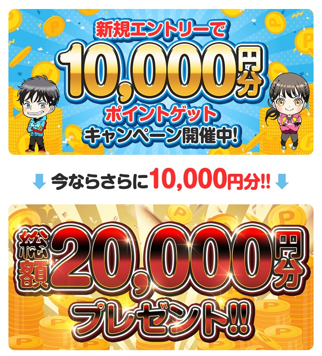 エンカウントは登録特典で10,000円分のポイントが貰えるようですが、今なら20,000円分のポイントを貰えるようです。