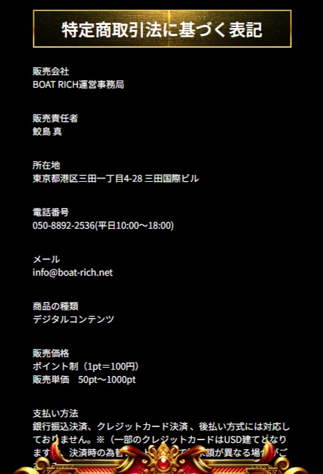 - 【販売会社】BOAT RICH運営事務局