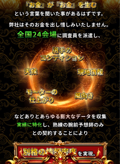 「全国24場に調査員を派遣」や「熟練の凄腕予想師と契約」など凄いことがたくさん書かれていますね。