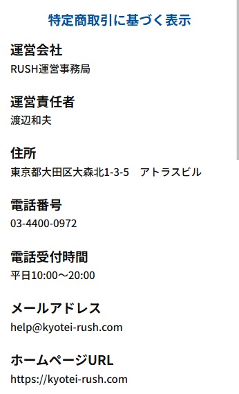 競艇ラッシュの特商法に基づく表記・基礎情報