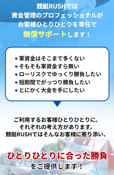 競艇ラッシュは怪しい部分がないため、「まずは会員登録→会員様の声ページから的中報告の多いプランで勝負」という流れでも良さそうです!