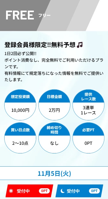 無料予想やポイント付与はよくあるものですが、初回限定の有料プランはすべての予想サイトに用意されているものではありませんね。