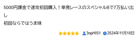 | ハイアー | 70万円以上 | 15,000円 | 3連単2~10点 | 2レース | 600pt | - |