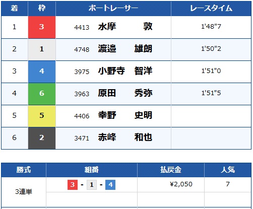 ただ、渡邉雄朗もしっかり着は残し、オッズは低めの的中となりました。