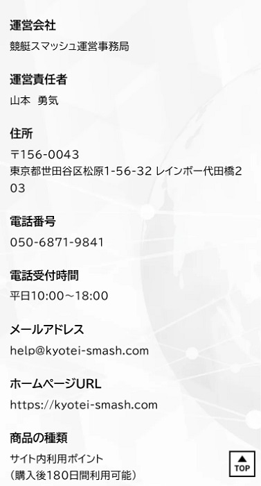 競艇スマッシュの特商法に基づく表記・基礎情報