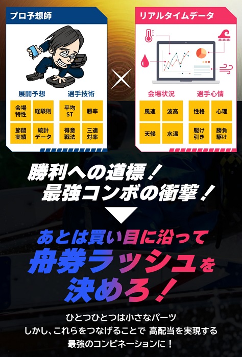 どうやら「プロ予想師×リアルタイムデータ」で予想を仕上げているらしく、この2つの「コンボ」で予想の質を上げているようです。
