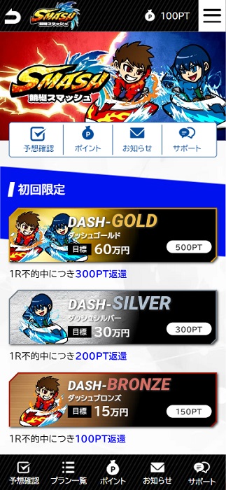 さらにさらに、目標金額や予想の信頼度に応じて日によって価格が変動する「5地区別プラン」のスマッシュ5も用意されているというかなりサービス精神旺盛なようす!