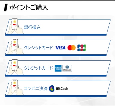 競艇スマッシュは銀行振込をはじめ、クレジットカードやコンビニ決済でポイントを購入することができます。