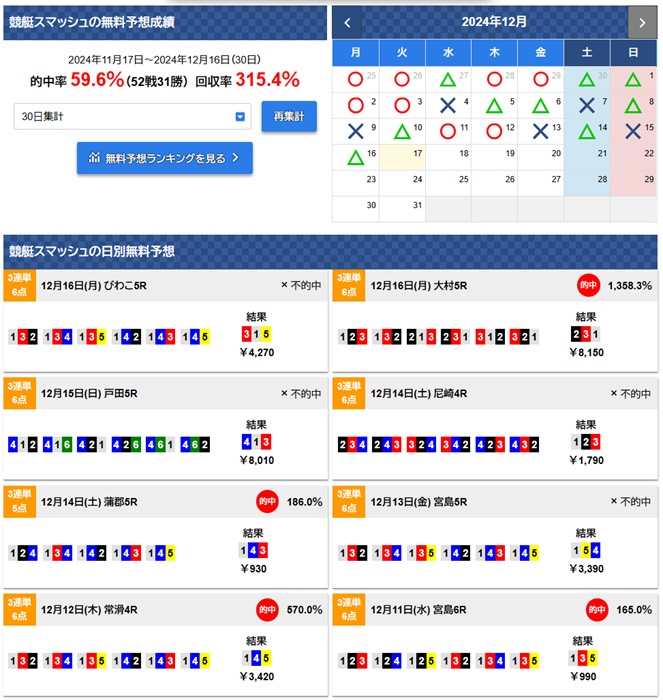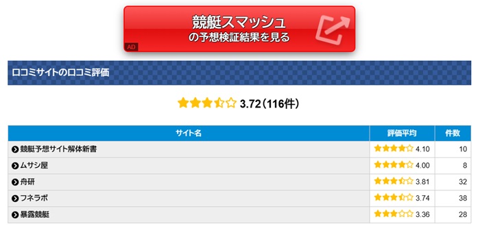 口コミの評価が高く、無料予想も好調な競艇スマッシュ。