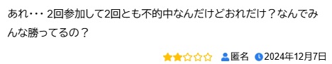 有料プランが2回連続ではずれたら確かにショックだけど、優良サイトであってもそれはよくあることだワニ。