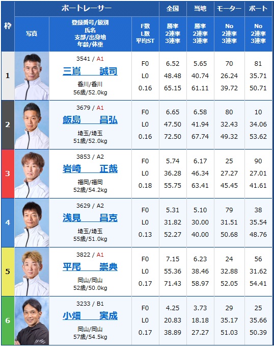 - 【3号艇】:岩崎正哉(A2/福岡)