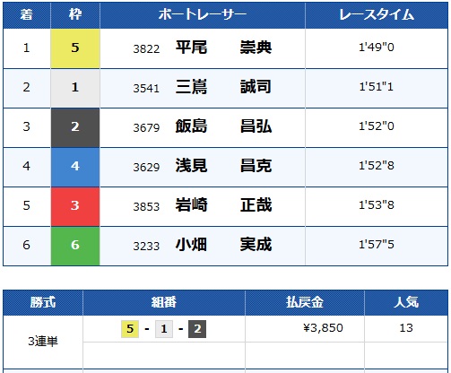 - 【2号艇】:飯島昌弘(A1/埼玉)